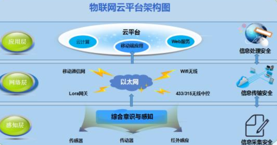 智慧教室設備滿足物聯(lián)網(wǎng)的三個層次(應用層、傳輸層、感知層),運用傳感器等技術,使信息傳感設備實時感知需要的信息,按照約定的協(xié)議,通過可能的網(wǎng)絡(如基于LoRa的無線局域網(wǎng)、GSM等)接入方式,把物品與互聯(lián)網(wǎng)相連接,進行信息交換和通信,實現(xiàn)物與物、物與人的泛在鏈接,實現(xiàn)對物品的智慧化識別、跟蹤、監(jiān)控和管理。